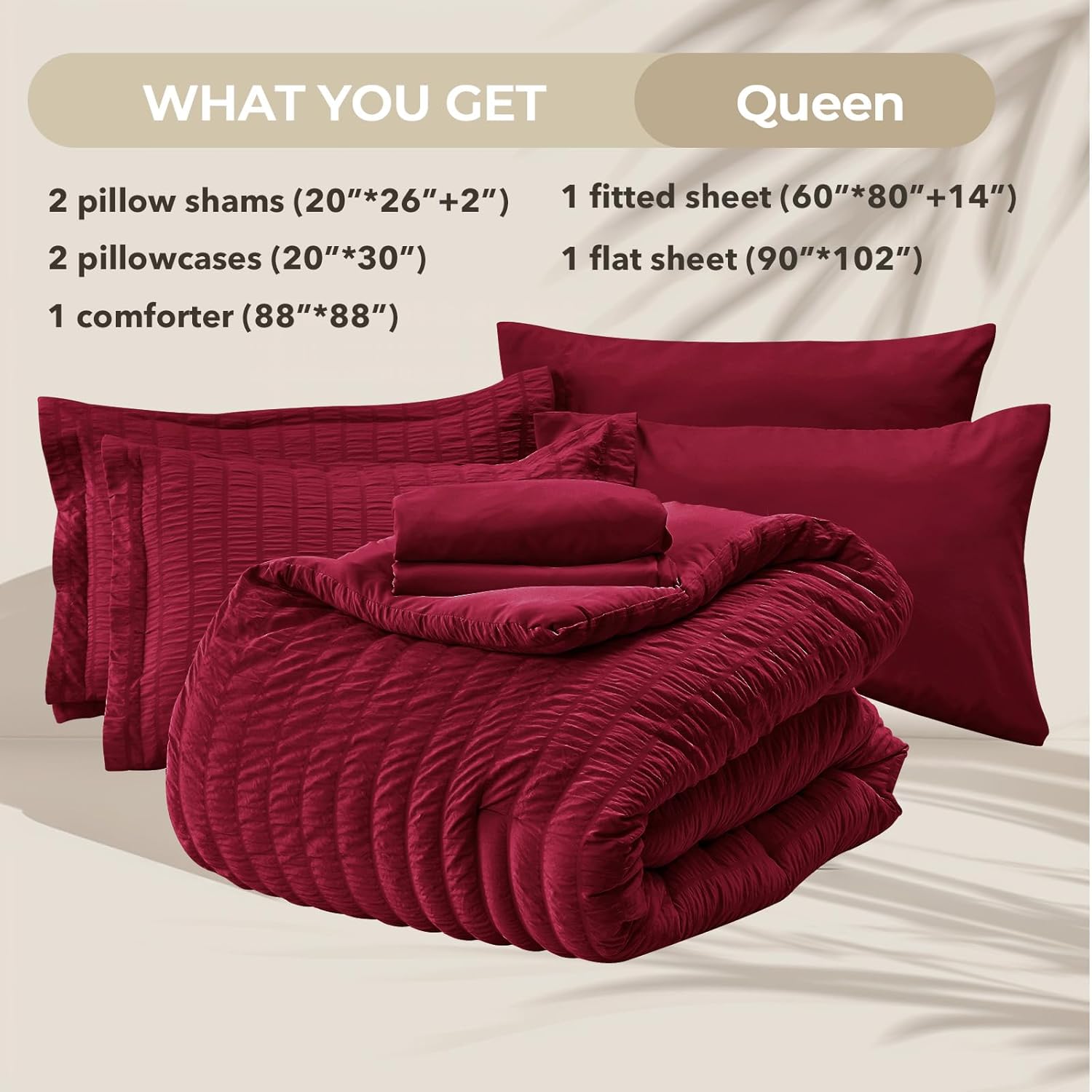 HYMOKEGE Queen Comforter Set Seersucker 7 Pieces, Bedding Set with Comforters, Sheets, Pillowcases & Shams