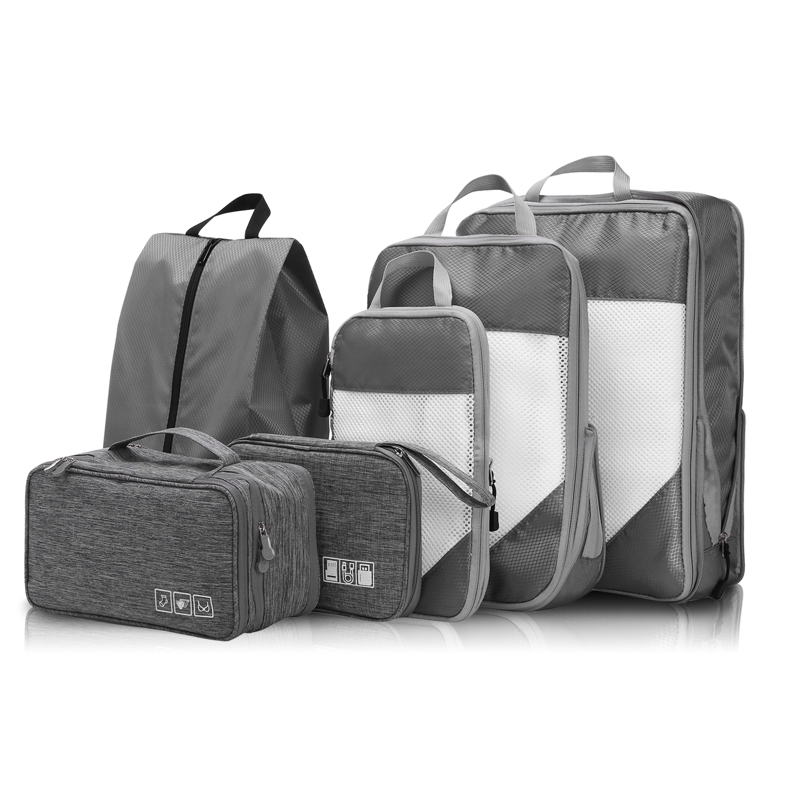 600D NYLON FABRIC: These compressible luggage cubes are made of 600D ripstop nylon fabric, which is water-resistant, lightweight yet durable. Besides, the mesh top of each travel cube is reinforced with professionally done seams which ensures long-lasting usage.